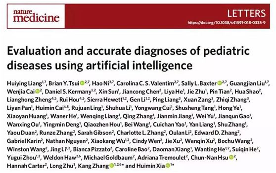 今年2月,《Nature Medicine》在线刊发了由中国依图医疗与广州市妇女儿童医疗中心联合科研团队完成的题为《使用人工智能评估和准确诊断儿科疾病》的文章。据悉,这是该权威医学杂志首次发表有关自然语言处理(NLP)技术基于中文文本型电子病历(EHR)做临床智能诊断的研究成果,也刷新了中国智慧医疗实际应用的新高度。
